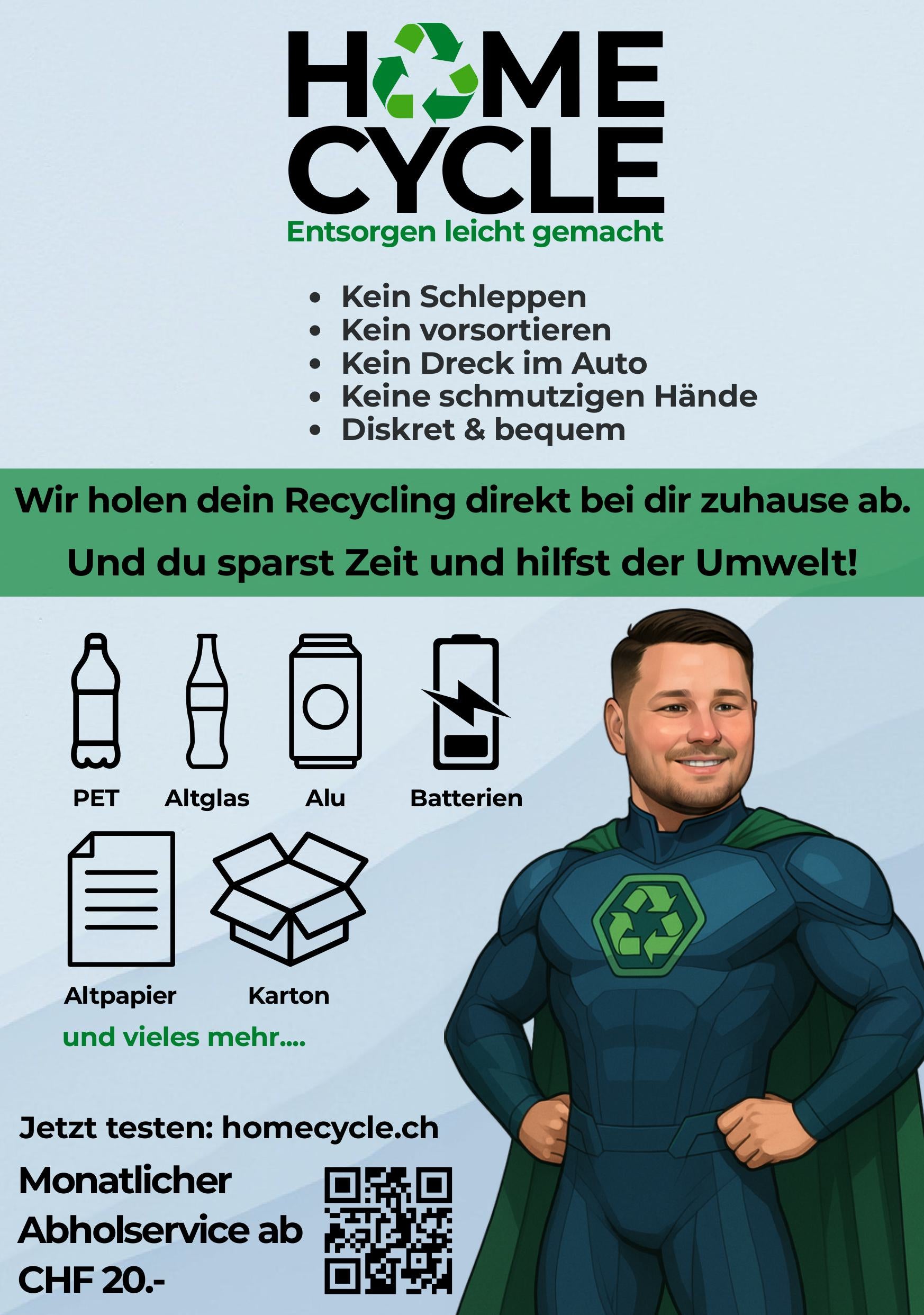 - Beitrag zur Kreislaufwirtschaft: Papier, PET, Glas, Alu & E-Schrott landen garantiert im richtigen Kreislauf – ein aktiver Beitrag zum Umweltschutz.